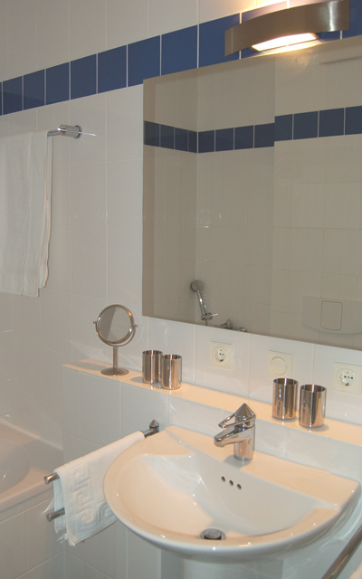 Im Keller befinden sich eine Münz-Waschmaschine und ein Trockner für alle Gäste des Hauses. Außerdem gibt es dort die Möglichkeit Fahrräder oder Kinderwagen abzustellen. Für Ihr Auto gibt es hinter dem Haus einen Parkplatz.